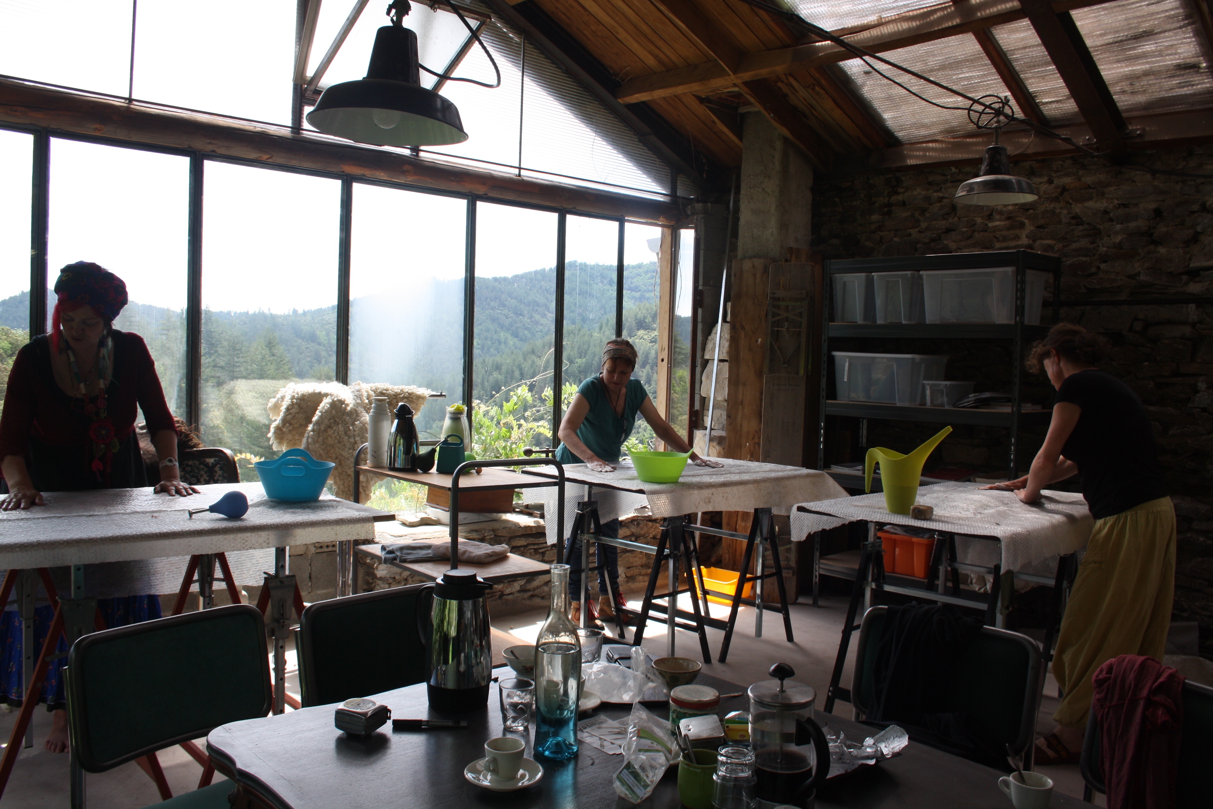 Au pied du Mas, au bord du ruisseau, se trouve notre petit camping écologique idyllique avec deux belles tentes-glamping bien équipées (une tente safari (5p) et une yourte (2/3p)), plusieurs emplacements et un bâtiment sanitaire. Il y a également « le salon des randonneurs », qui accueille les voyageurs à petit budget séjournant au gîte d'étape ou au camping en autonomie, avec un coin cuisine modest, un coin repas, un coin salon et une magnifique terrasse extérieure sous les vignes. Il y a également un magnifique atelier spacieux et lumineux (qui peut également servir de salle de yoga ou pour d'autres activités, ou encore être transformé en gîte ou en maison d'habitation) ; ainsi que divers espaces de stockage et des caves, un potager, des châtaigniers, des arbres fruitiers, des noyers, des oliviers et de nombreuses vignes. La plupart des repas servis à la table d'hôte, y compris les confitures et les jus de fruits, sont produits sur notre propre exploitation (bio & permaculture).